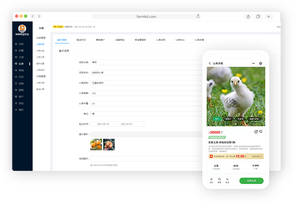 认养农业解决方案,涵盖了农业领域认养果树;认养家畜、畜牧,认养过程中消费者视屏监控可看消费者与农场共同管理。