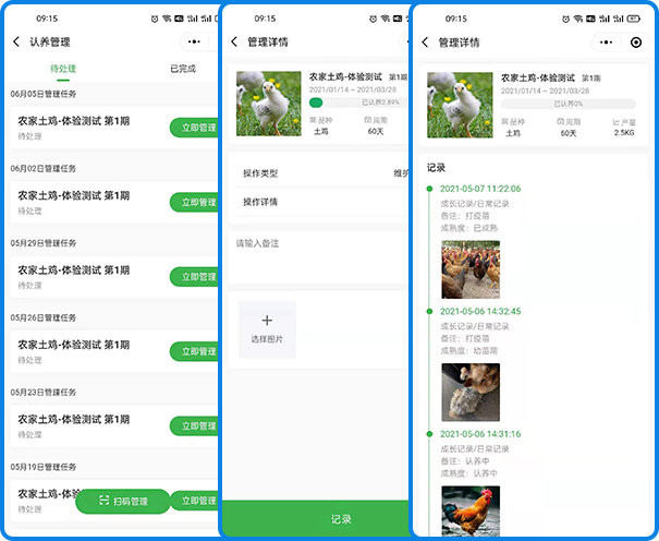 可查看认养日志、定期更新的成长记录形成认养溯源